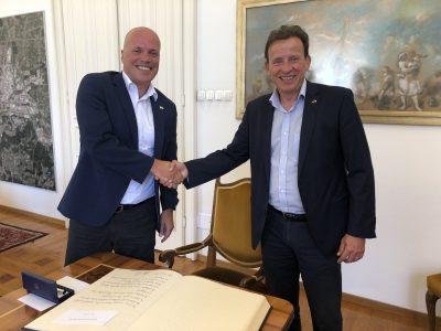 Župan naše Mestne občine Celje, Bojan Šrot danes gosti župana nemškega partnerskega mesta Grevenbroich Klausa ...